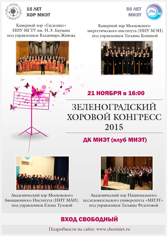Камерный хор "Гаудеамус" принял участие в IV Зеленоградском хоровом конгрессе, посвященном 50-летию МИЭТ и 15-летию Хора МИЭТ.
