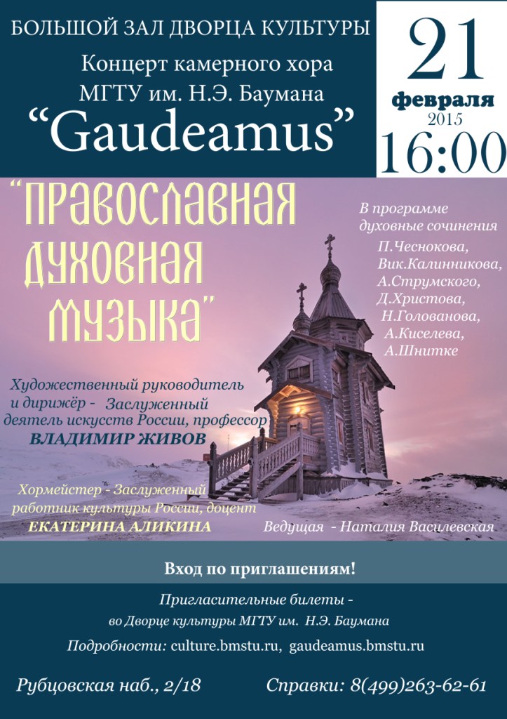 русской духовной музыки камерного хора МГТУ им.Н.Э.Баумана «Гаудемус»